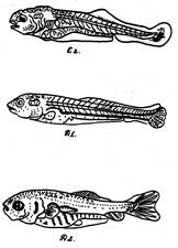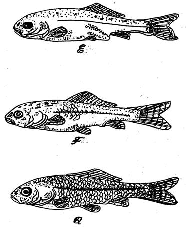 Рис. 3 б. Постэмбриональное развитие сазана стадии (Е,F,Q).