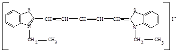 3) Дитиазанин или 3-этил-2-[5'-(3"-этил-2-бензотиазолинилиден)-1',3'-пентадиенил]-бензотиазолий йодил. Другое название – делвес, нетоцид, телмецид. Относится к группе красителей (синий цианиновый). Применяется для лечения трихоцефализа, стронгилоидоза.