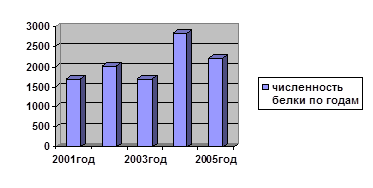 Рисунок 4. Динамика численности белки в Свободненском районе в период с 2001 по 2005 год
