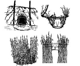 Рисунок 11- Некоторые способы установки капканов на ондатру.