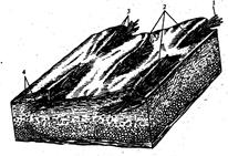 Рисунок 16- Расположение групп волос на коже: 1-волосы; 2-волосяные пучки; 3-сложная группа волос; 4-корни волос.