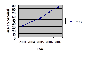 Рисунок 4– График численности ондатры на озере Абликон по данным осенних учётов за 2003-2007 гг.