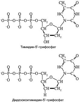 Рис. 1. Структуры тимидин-5'-трифосфата и его дидезоксианалога