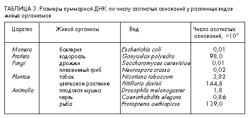 Eсли учесть то, что для записи одного аминокислотного остатка требуется 3 азотистых основания и что часть генома, шифрующая аминокислотные последовательности, составляет только несколько процентов от его общей величины, то получается, что самый большой геном способен вместить информацию о последовательности, состоящей лишь из 109 аминокислотных остатков. Таким образом, в нем может содержаться информация менее чем об 1% всех возможных декапептидов. А ведь известны белки, содержащие более 5 тыс. аминокислотных остатков!
