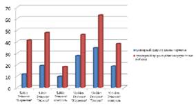 Лучше укоренились черенки спиреи японской сорта ΄Golden Princess΄, чем черенки сорта ΄Little Princess΄, так как прирост черенков сорта ΄Golden Princess΄, обработанных стимулятором роста "Корневином", составил от 1,5 до 5 см, а ΄Little Princess΄ - от 0,5 до 1 см. Прирост черенков сорта ΄Golden Princess΄, обработанных "Экосилом", составил от 1,5 до 6 см, а сорт ΄Little Princess΄ - от 1 до 4 см. Суммарный прирост длины черенков и длины верхушечных побегов представлен на диаграмме 2.