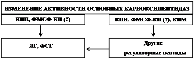 На основании полученных нами данных, которые частично раскрывают роль основных карбоксипептидаз в патогенезе алкоголизма, могут быть, вероятно, определены основные пути поиска средств для профилактики и лечения алкоголизма и бесплодия путем целенаправленного поиска лекарственных средств среди регуляторов активности ферментов.