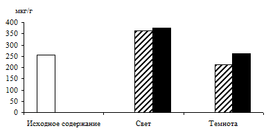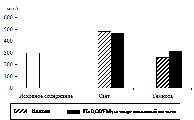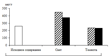 Яблочная и лимонная кислоты не влияли на образование данных соединений на свету (рис. 2, 3).