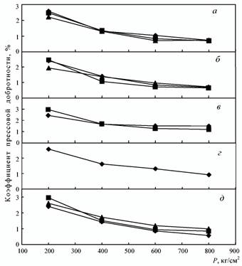 Учитывая разнонаправленность изменения Крел и Кур при наложении давления прессования, А.Ф. Красюков ввел понятие коэффициента прессовой добротности (Адц), характеризующего преобладание пластических свойств над упругими.