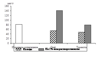 Рис. 4. Влияние света (12 Дж/м2×с) на содержание триоз