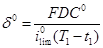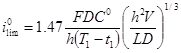 где C0 − концентрация электролита на входе в канал обессоливания, D – коэффициент диффузии электролита, L – длина активной поверхности мембраны, h – межмембранное расстояние, V – линейная скорость протока раствора, T1 − эффективное число переноса противоиона соли в мембране, t1 − электромиграционное число переноса этого иона в растворе, F – число Фарадея. Данное уравнение позволяет рассчитать «невозмущенную» предельную плотность тока