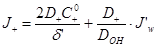 где J+ и D+ – плотность потока и коэффициент диффузии катионов соли. Уравнение (4) отличается от классического тем, что вместо d0 в нем фигурирует толщина электронейтральной части (