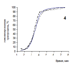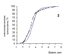 Как известно, состав эритроцитарной популяции неоднороден. В соответствии с хронологическим возрастом эритроцитов положение начальной части кривой определяется содержанием в периферической крови старых малостойких клеточных форм, средней части – основной массы среднеустойчивых клеток, и ее конечной части – наличием устойчивых молодых форменных элементов [20, 38].