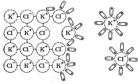 К+А- + хН2О <=> К+(Н2О)к + А-(Н2О)а