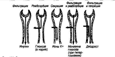 Канальцевой секрецией называют активный транспорт в мочу веществ, содержащихся в крови или образуемых в самих клетках канальцевого эпителия, например аммиака. Секреция осуществляется, как правило, против концентрационного или электрохимического градиента с затратами энергии. Путем канальцевой секреции из крови выделяются как ионы K+, Н+, органические кислоты и основания эндогенного происхождения, так и поступившие в организм чужеродные вещества, в том числе органического происхождения. Для ряда чужеродных организму веществ органической природы (антибиотиков, красителей и рентгеноконтрастных препаратов) скорость и интенсивность выделения из крови путем канальцевой секреции значительно превышает их выведение путем клубочковой фильтрации. Таким образом, канальцевая секреция является одним из механизмов обеспечения гомеостаза.