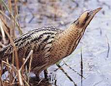 Выпь всегда замирает в такой позе, если опасность реальна. Несмотря на вертикальную позицию головы, глаза глядят вперёд и наблюдают за действиями врага.