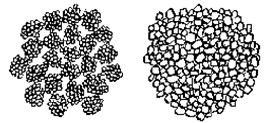 Рис.1 Сравнение структуры спелой почвы (слева) и гравийного субстрата (справа). |