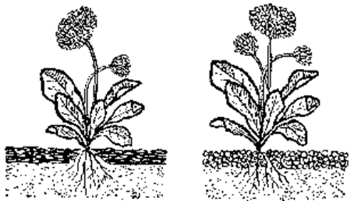 Рис. 2 Слева - сплывание почвы препятствует проникновению кислорода к корням; справа - при рыхлом верхнем слое почвы кислород легко проникает к корням. |