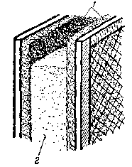 Рис. 7 Заполнение основы: 1 - наружные слои из волокнистого торфа или мха; 2 - масса субстрата (смесь торфяной крошки и подстилки).