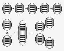 Регулярная, запланированная и обязательная рекомбинация появилась гораздо позже, одновременно или вскоре после возникновения эукариотических клеток. В пользу этого предположения свидетельствует тот факт, что у подавляющего большинства современных эукариот рекомбинация происходит регулярно, а ее молекулярные и клеточные механизмы у самых разных организмов поразительно сходны. Сходство мы обнаруживаем и в том, что у всех них рекомбинация так или иначе связана с размножением. У эукариот, в отличие от бактерий, результаты рекомбинации проявляются не у самих организмов, а у их потомков.