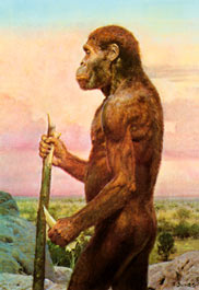 Так мог выглядеть австралопитек, один из возможных предков человека, живший около трёх миллионов лет назад. Рисунок З. Буриана. |