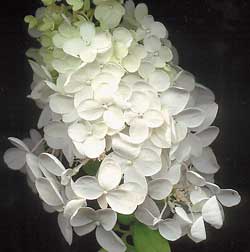 Гортензия метельчатая – быстрорастущий, декоративный кустарник высотой до 1, 5 метра. У неё крупные листья и прямые, тонкие побеги. Соцветия крупные пирамидальной формы, до 30 см. длинной. Цветки бывают двух видов: стерильные, без тычинок и пестика, до 3 см. в диаметре, и мелкие обоеполые, лепестки у которых опадают сразу после опыления.