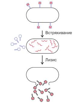 Результаты этого эксперимента прямо показали, что ДНК родительских фагов проникает в бактерии и затем становиться составляющей развившихся новых фагов частиц.