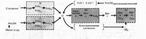 Рис.7. Дыхательная электронтранспортная цепь растительных митохондрий