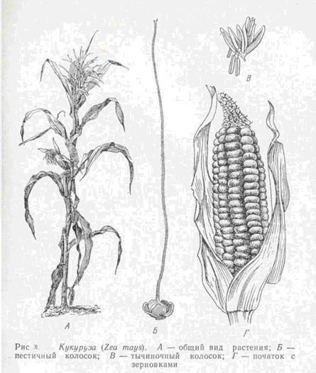 Кукуруза (Zea mays) — однолетнее однодомное растение. Родина — Мексика. В последние столетия распространилась по всему земному шару.