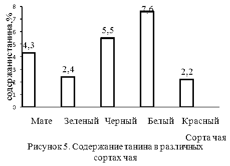 Определение количества полифенольных соединений проведено в перерасчете на танин. Результаты исследования показаны на рисунке 5.