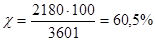 Пусть 3601 Бк/л. – 100%, тогда 2307 Бк/кг –
