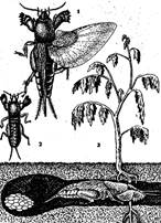 рис. 3.6 Обыкновенная медведка: 1 – взрослая, 2 – личинка,