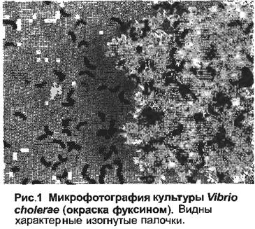 Клетки Vibrio cholerae размером 1,5-4,0 x 0,2-0,4 мкм имеют один полярный жгутик, снабжённый чехликом и продольным выростом, напоминающим ундулирующую мембрану. Подвижность бактерий весьма выражена, и её наличие — важный диагностический признак, выявляют методом висячей или раздавленной капли. Не образует спор и капсул. Для бактерий характерен полиморфизм — типичные формы наблюдают в клиническом материале, в мазках из колоний доминируют палочковидные формы (Рис.1). Под действием пенициллина холерные вибрионы способны образовывать L-формы. Вибрионы хорошо окрашиваются анилиновыми красителями; обычно используют водный фуксин Пфайффера и карболовый фуксин Циля. [3]