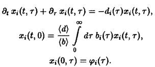 Уравнения и описывают временную эволюцию систем стареющих конкурирующих между собой видов и тем самым удобны для математического анализа индивидуального развития и отбора.