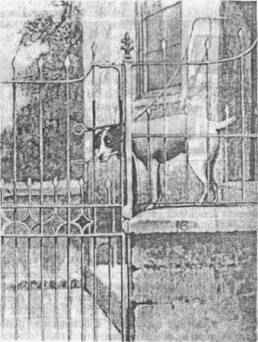 Рис. 5. Рисунок, сделанный по фотографии «исторического» эпизода. Собака К. Л. Моргана научилась открывать задвижку калитки, получая тем самым возможность «обрести свободу». Эта ситуация считается прототипом торндайковского «проблемного ящика».