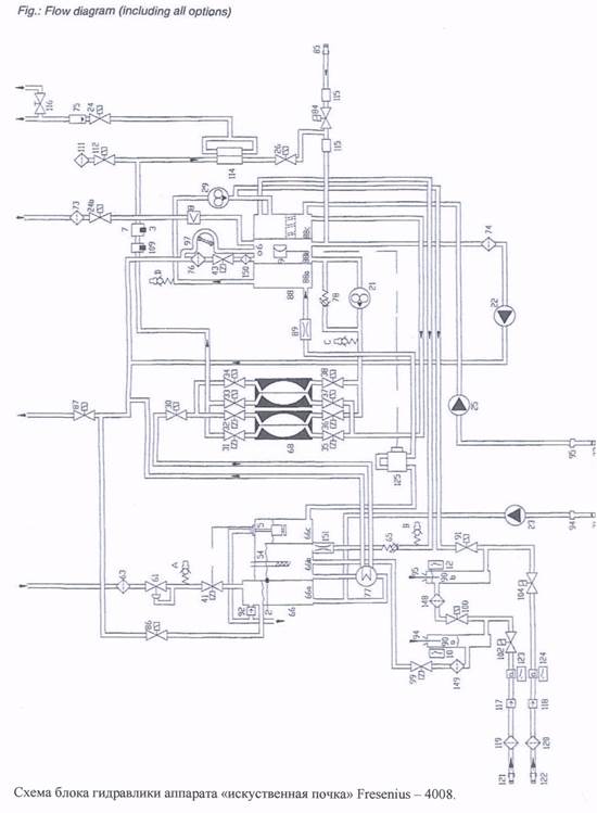 Рис. 4. Схема блока гидравлики аппарата искусственная почта Fresenius-4008.