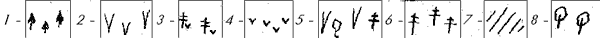 Рис. 1. Природная зональность в Берингии и прилегающих районах около 3 млн. лет назад: 1 – темнохвойная тайга с альпийским поясом в горах, 2 – саванноидные ландшафты, 3 – лесотундра, 4 – тундра, 5 – степь и тайга, выше которой расположен пояс гольцов, 7 – море, 8 – листопадные леса