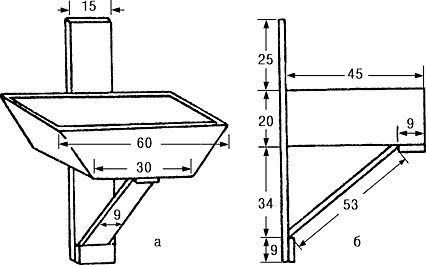 Дощатая платформа для бородатой неясыти: а - вид спереди, б - вид сбоку.