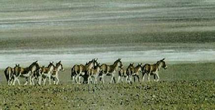 Наши надежды встретить киангов на землях, лежащих западнее Герце, оправдались: между поселками Янху и Гаки, на расстоянии 188 км, мы встретили 333 кианга! Здесь, около красивейших озер, жили и одиночные животные, и небольшие группы и даже стадо из 120 особей. Среди взрослых животных было много жеребят, родившихся этой весной и уже вполне окрепших. Гармонично сложенные, быстрые, сильные звери, которые в мгновение ока могли бы исчезнуть с наших глаз, однако оказались, действительно, настолько любопытными, что позволили приблизиться достаточно близко, чтобы запечатлеть их на фотопленку.