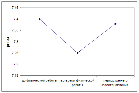 При физической нагрузке происходит закисление крови и тканей кислыми продуктами обмена, преимущественно лактатом, поэтому отмечается значительное снижение рН.