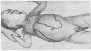 Висцеральным лейшманиозом чаще заболевают дети. После инкубационного периода длительностью от нескольких недель до нескольких месяцев у заболевшего повышается температура тела, в разгаре болезни достигающая 39—40°С, появляется вялость, адинамия, бледность, исчезает аппетит, увеличивается, иногда резко, селезенка и печень, вследствие чего заметно выступает живот (рис.№ 6)