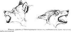 В социальном поведении волков есть форма, которую можно расценить как дистантную демонстрацию превосходства. Зверь, перед которым находится партнер, ложится на землю, как бы затаиваясь. При этом он собран, уши подняты и повернуты вперед. Поза выражает готовность сорваться с места и броситься в атаку. Демонстрация превосходства, включающая прямое физическое воздействие па партнера — «прижимание к земле», происходит, когда он придавливает партнера к земле, хватая его зубами за шею или морду. Демонстрация — «угроза укуса» — зверь обнажает зубы и пристально смотрит на партнера, уши его подняты и направлены вперед, лапы напряжены, хвост дрожит, волосы па холке и крестце вздыблены, язык может высовываться между зубами. При этом зверь издает глухое клокочущее рычание. Угрожающие демонстрации присущи социально активным животным, как правило, занимающим высокое социальное положение. Однако звери в противоположном мотивационном состоянии могут проявлять агрессию не реже, а даже чаще волков первого типа. Но эта агрессия защитного характера, в ней сочетаются элементы угрозы, страха, неуверенности или подчинения: волк делает выпады, щелкает оскаленными зубами и поднимает шерсть на холке и крестце, но хвост держит поджатым, уши прижимает к голове, растягивает губы и, нередко, совершает лизательные движения языком. При этом он отворачивает голову и укусы направляет скорее в пространство, чем на противника.