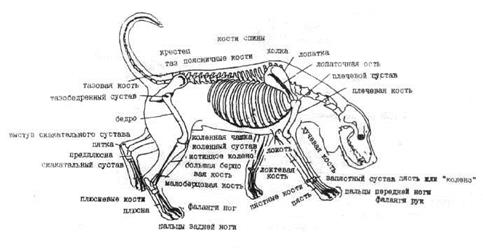 Костной основой хвоста являются позвонки, чаще всего их бывает 20-23, реже бывают колебания от 15 до 25. Первые 2-3 хвостовых позвонка развиты хорошо и имеют все характерные анатомические образования для типичного позвонка. Остальные хвостовые позвонки постепенно уменьшаются в размерах, их части изменяются таким образом, что последние хвостовые позвонки имеют вид маленьких притуплённых конусов. Такие анатомические изменения обусловлены тем, что, в отличие от других частей позвоночника, хвост собаки не несёт особой нагрузки. Тела позвонков соединены между собой межпозвоночными дисками, которые представляют из себя волокнистый хрящ. Кроме этого хвостовые позвонки соединяются между собой связками (сухожилиями) трёх типов. Дужки позвонков соединяются междужковыми жёлтыми связками – ligg. flava. Остистые отростки позвонков соединяются с помощью межостистых связок – ligg.interspinalia. И поперечные отростки соединяются межпоперечными связками – ligg.intertransversaria. Заднепроходно-хвостовые связки (lig. suspensoria ani) фиксируются к вентральной поверхности 2-го хвостового позвонка по бокам от срединной линии.