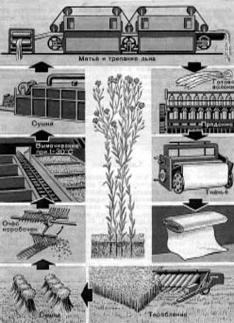Как правило, лен продавался чисто и хорошо обработанным. А это был тяжелый и трудоемкий процесс. На возделывание одной десятины льна требовалось 26 дней чисто земледельческих и 77 дней на получение волокна из соломки. Производство льняных изделий издавна было одним из основных занятий русского населения. Веретена, прялки и громоздкий деревянный ткацкий станок были обязательной принадлежностью каждой крестьянской избы в Древней Руси.