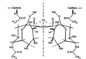 Своеобразный процесс межклеточного гликозилирования поверхностных гликолипидов и гликопротеинов осуществляется ферментами мембран. Полагают, что гликозилтрансферазы одной клеточной поверхности удлиняют, надстраивают олигосахаридные цепочки гликолипидов и гликопротеинов соседней, противоположной поверхности. Важная регу-ляторная роль в этом процессе принадлежит ионам кальция. Са*+ препятствует образованию субстрат-ферментного комплекса между ганглиозидами и гликозилгрансферазами, а вытеснение его другими ионами способствует межклеточному гликозилированию.
