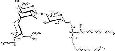 Такая конфигурация атомов вокруг гликозидной связи защищает ее от действия фермента и способствует сохранению отрицательного заряда молекулы. Иная картина наблюдается с ганглиозидами, лишенными N-ацетилгалактозамина: GT3, GD3,
