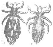 Рис. Самка (а) и самец (б) головной вши.