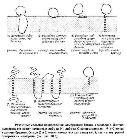 Еще один важный момент — способы прикрепления белков к мембране. Они схематически представлены на рис. 3.1.