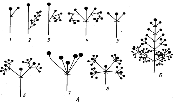Рис. 5. Цимоидные соцветия. А — цимоиды:
