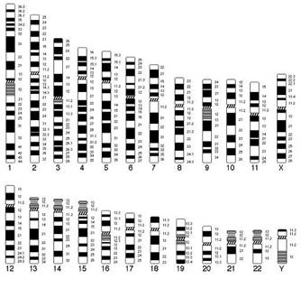 Рис.1. Схематическое изображение хромосом человека при G-окрашивании в соответствии с международной классификацией