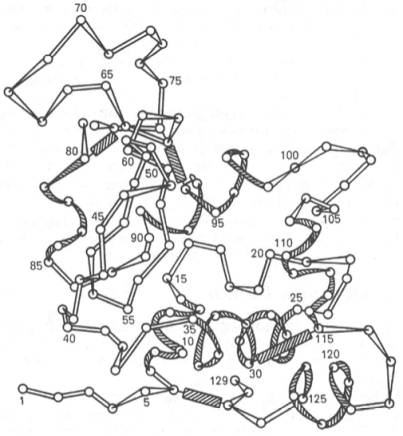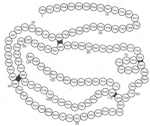 Рис. 1.16. Первичная структура полипептидной цепи лизоцима (схема).